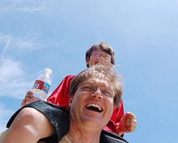 THE GOOD LIFE. In Clarksville . Russ Nygaard and his son Dyson soak up the sun at Clarksville Day, 2009. Mother Lode News photo by Mike Roberts